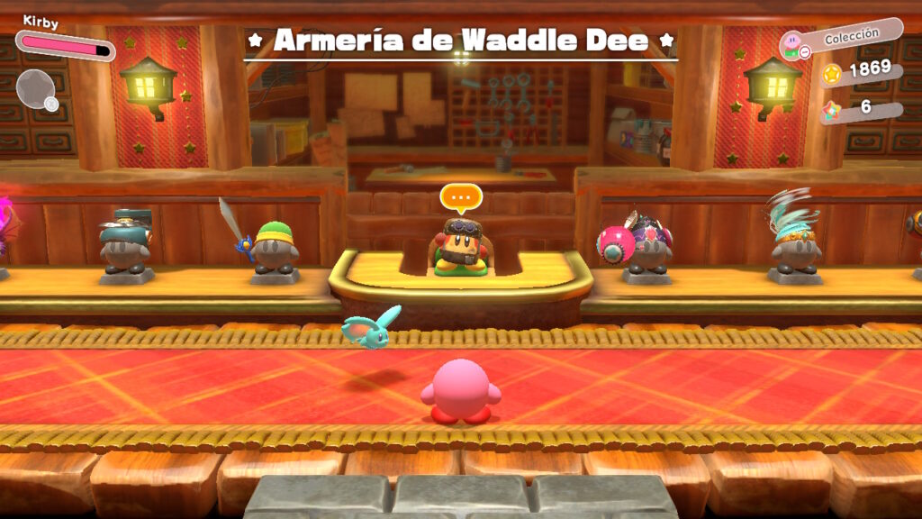 Una vez hemos descubierto una habilidad, ésta aparece en la Armería de la ciudad principal (ciudad de los Waddle Dees). Podemos coger la habilidad que queramos y así comenzar un nivel con esa habilidad. Esto nos permite:
