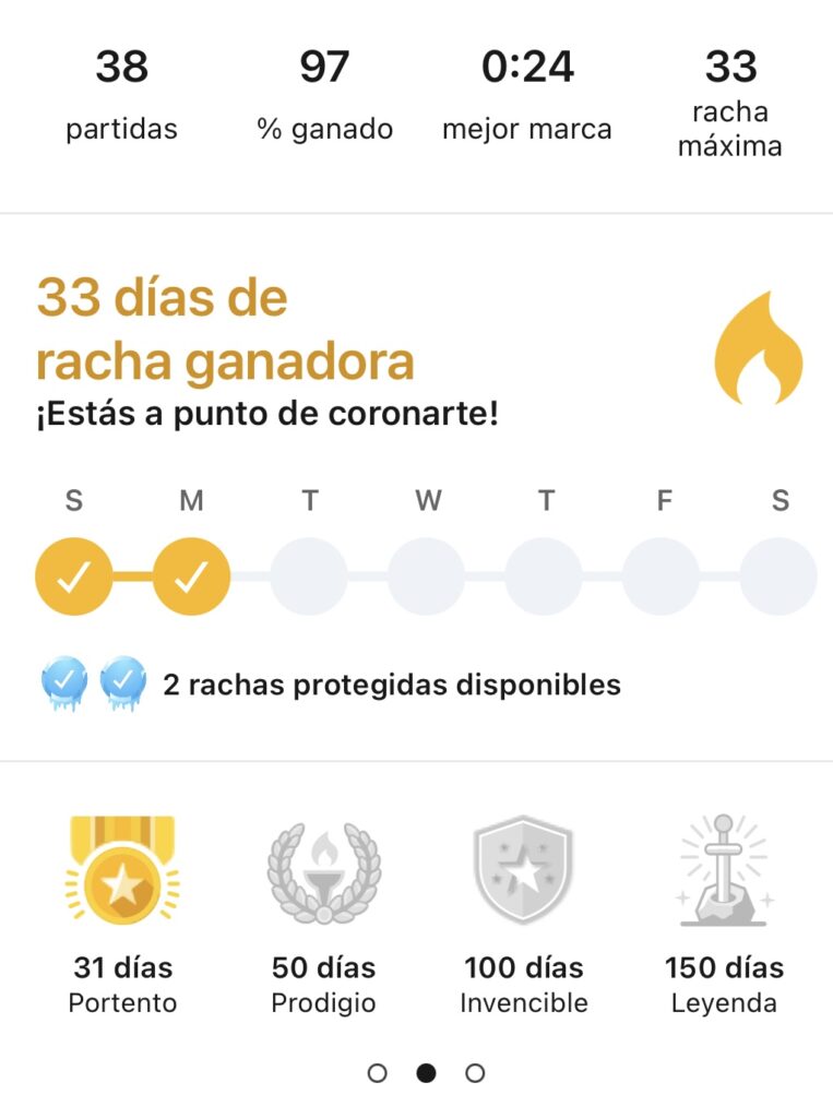 Los stats sobre rachas, número de partidas jugadas, tiempo que se tarda en completar el reto… genera competitividad con uno mismo para superarse día a día.