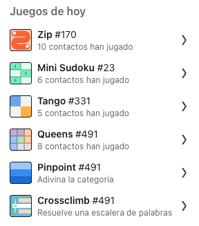 - Al finalizar el reto diario aparecen los contactos que también lo han resuelto.